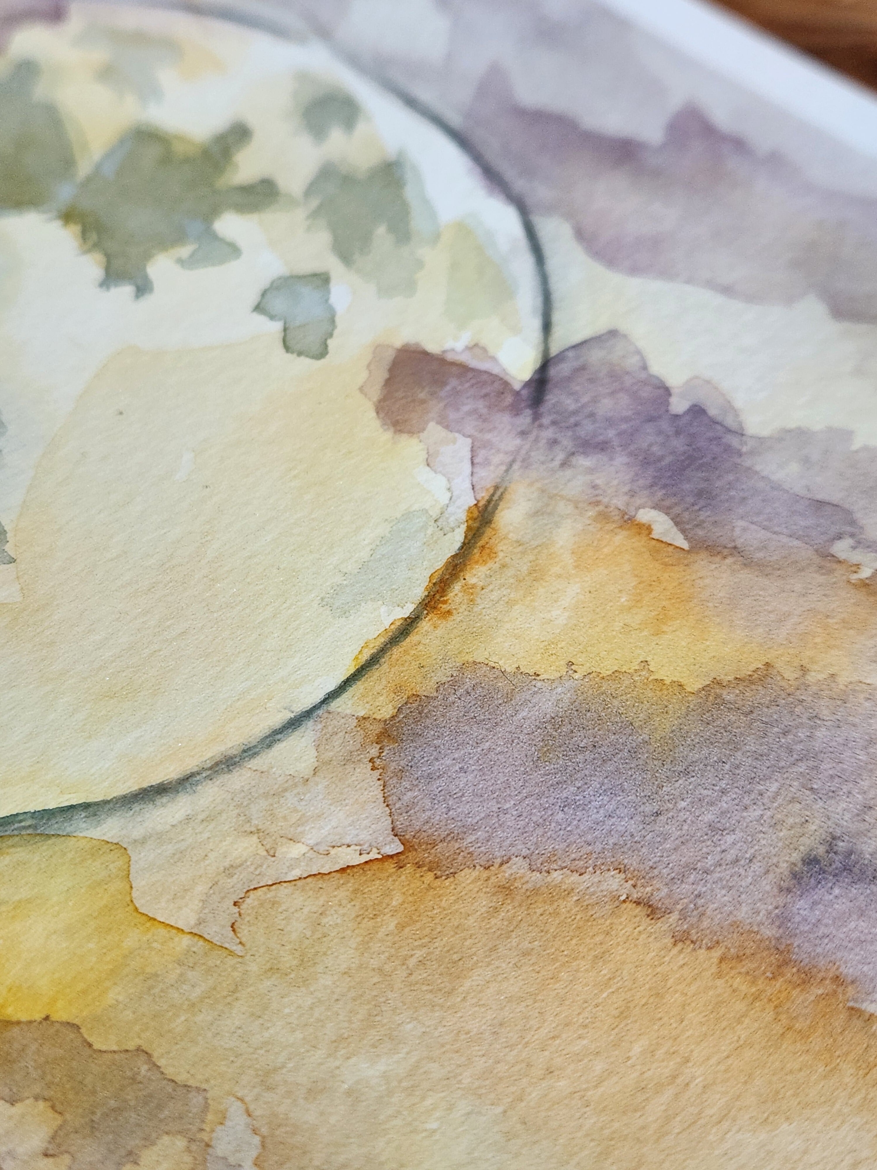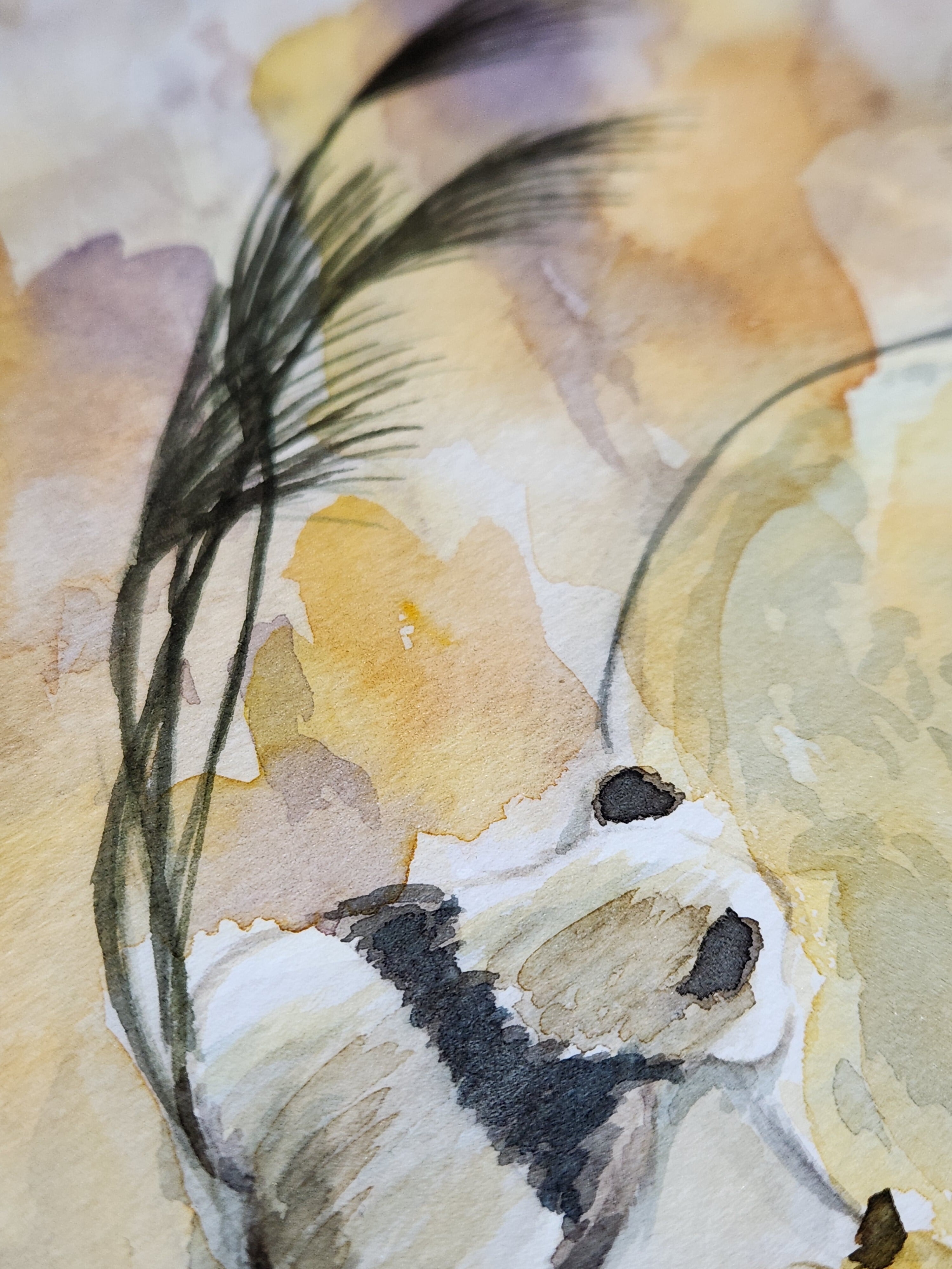 にじむ色の重なりや、筆の揺らぎを大切にしながら、静かな時間が流れるような一枚に仕上げました。